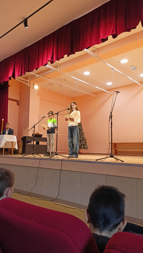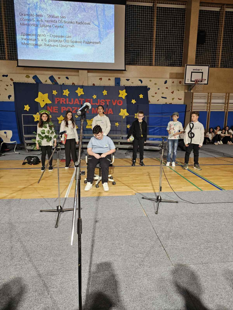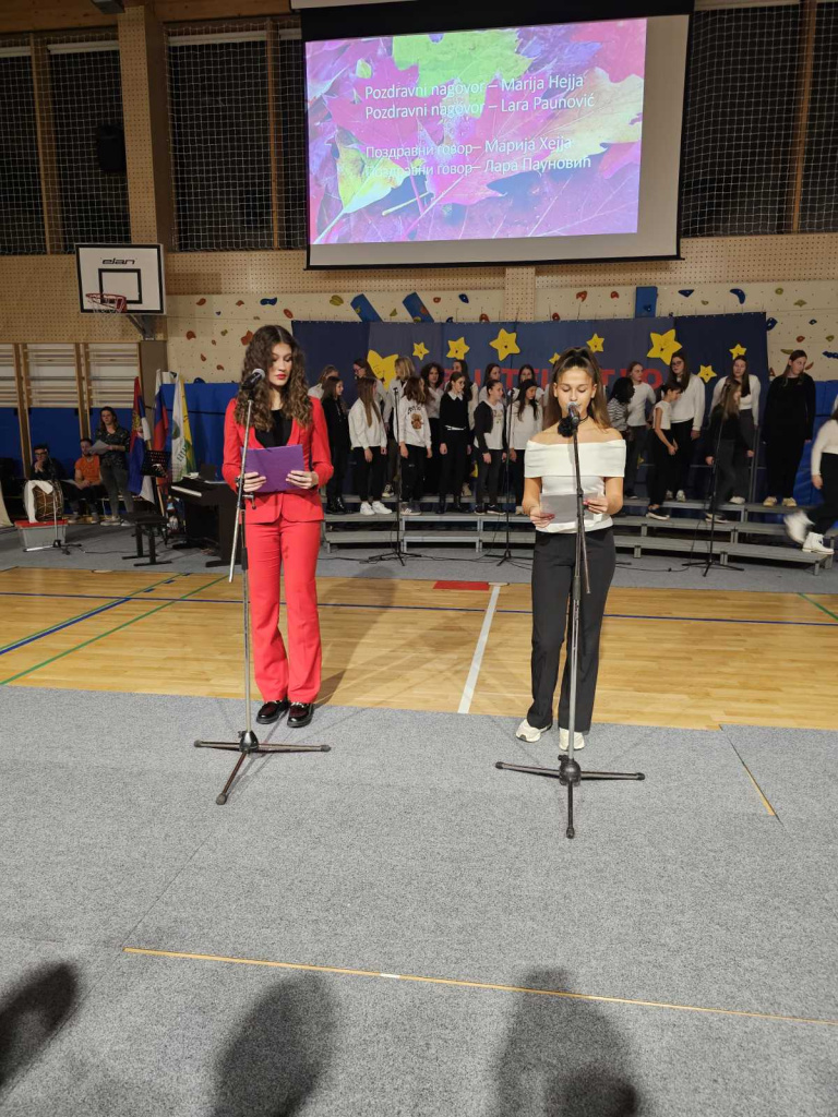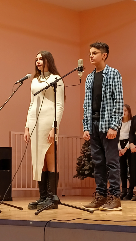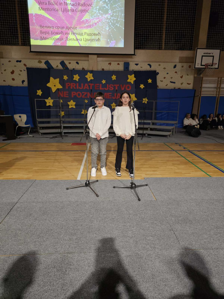 1.Ученици седмог један и седмог три одељења Алекса Јовановић и Исидора Јовановић - песма " Божур"- Милана Ракића